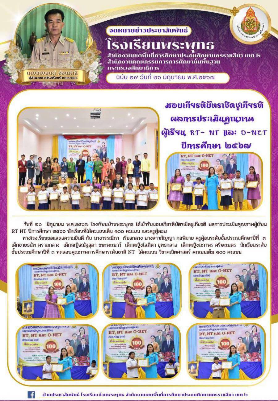 รับมอบเกียรติบัตรผลการสอบ NT