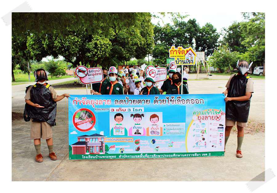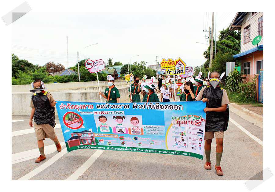 โรงเรียนจัดให้ความรู้เกี่ยวกับโรคไข้เลือดออก ยาเสพติด และประชาธิไตย ให้แก่ลูกเสือ เนตรนารี และทำสื่อประชาสัมพันธ์ให้ความรู้ในชุมชนพระพุทธ S:0