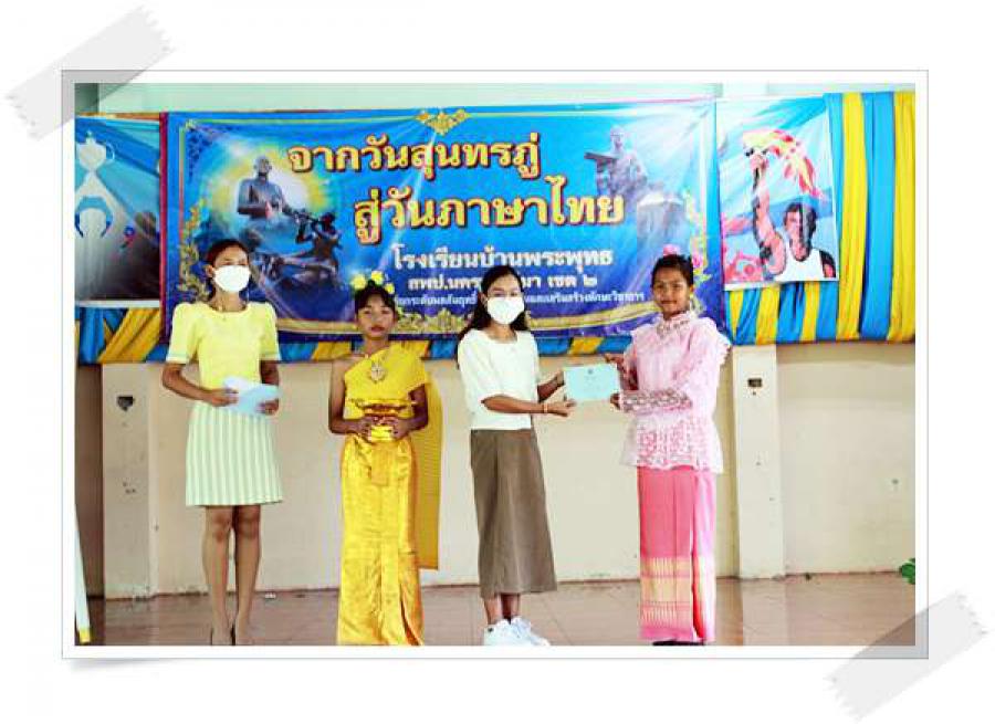 กลุ่มสาระการเรียนรู้ภาษาไทย โรงเรียนบ้านพระพุทธ จัดกิจกรรม จากวันสุนทรภู่ สู่วันภาษาไทย เพื่อเป็นกิจกรรมเสริมความรู้ด้านภาษาไทย วรรณคดีไทย รวมถึงประเพณีและวัฒนธรรมของไทย S:0